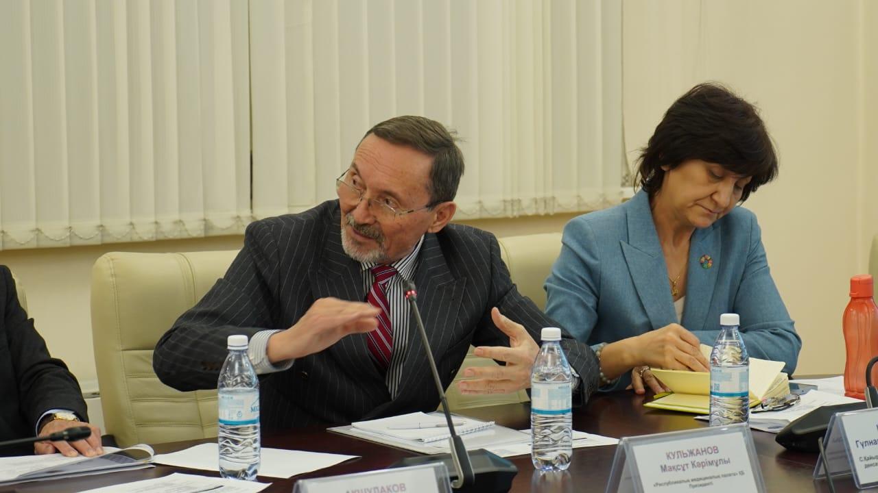 В обсуждении приняли участие: глава Общественного совета МЗ РК Надежда Петухова, председатель правления Национального центра нейрохирургии, академик Серик Акшулаков, академик НАН РК, репродуктолог Вячеслав Локшин, профессор Максут Кульжанов, представители экспертного и профессионального сообщества, палаты Атамекен, руководители КФ UMC, государственных и частных медицинских организаций.